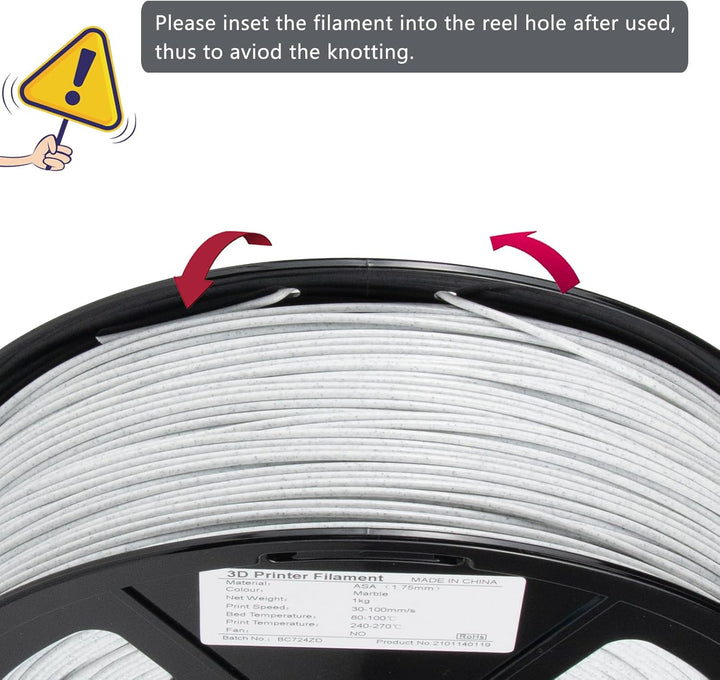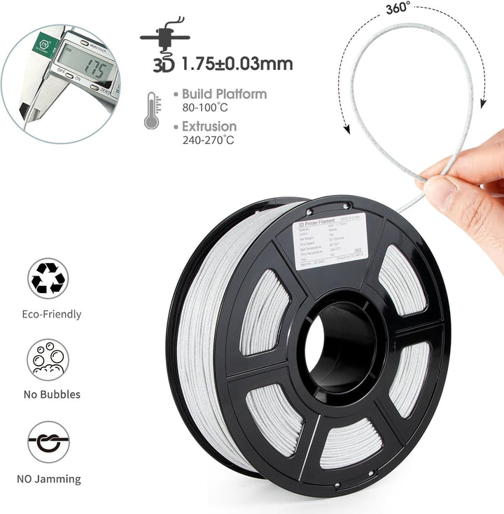 iSANMATE ASA Filament 1.75mm Marble UV & Weather Resistant 3D Printer Filament Specifications Material ASA filament Printing speed 30 - 100 mm/s Printing temperature 240°C - 270°C Dimensional Accuracy +/- 0.03...
